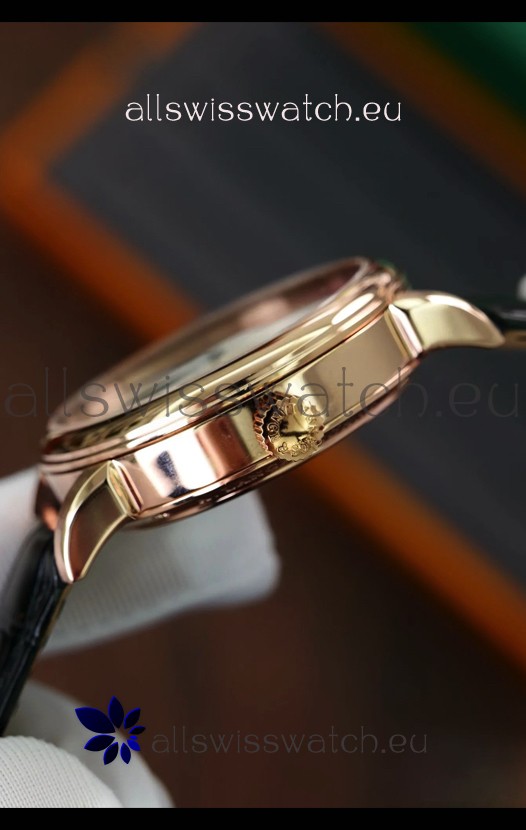 18K Rose Gold Plating on 904L Polished Stainless Steel Case.