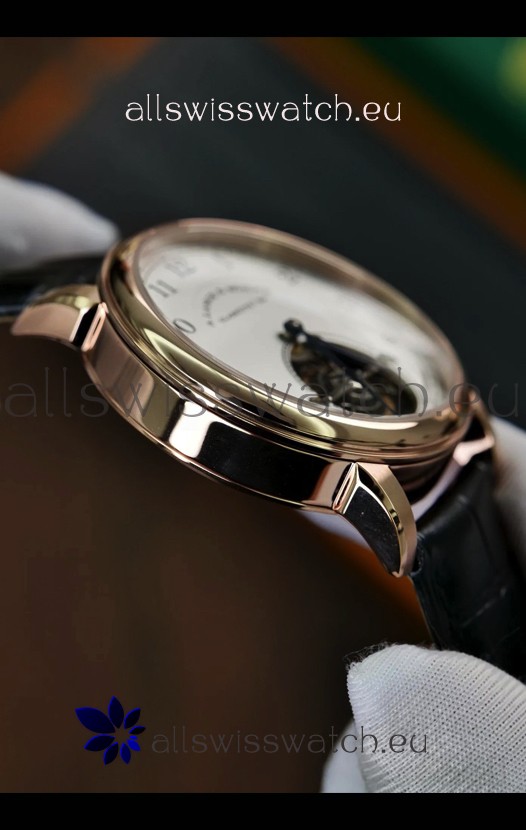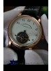 White Dial with Tourbillon located at 6 O clock Position on Dial.