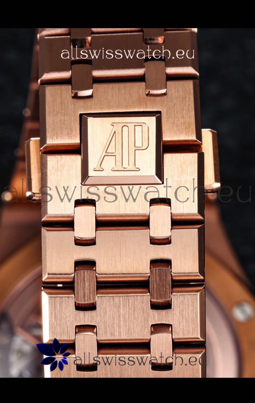 18K Rose Gold Plating on 904L Stainless Steel Strap complete with Audemars Piguet Markings and Engravings with AP Signature Clasps
