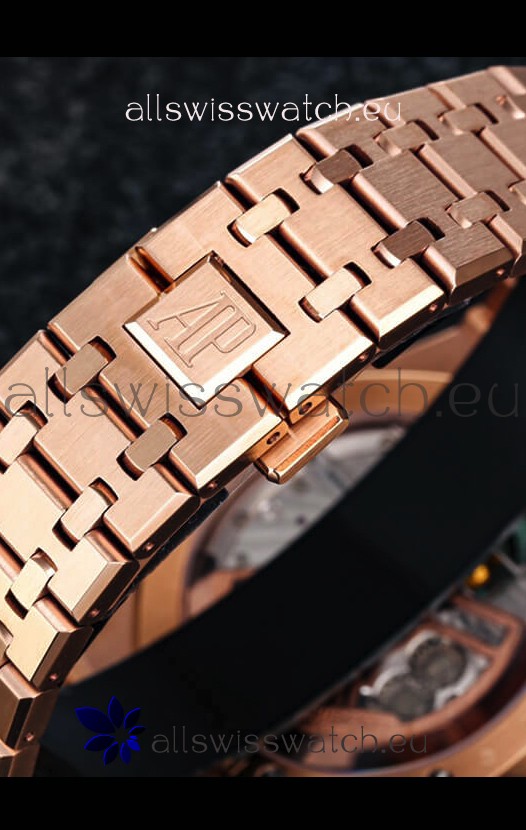 18K Rose Gold Plating on 904L Stainless Steel Strap complete with Audemars Piguet Markings and Engravings with AP Signature Clasps