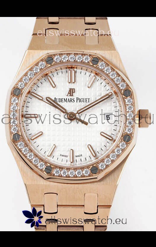 Audemars Piguet Royal Oak Swiss Automatic 34MM Swiss Watch in Rose Gold Casing - 1:1 Mirror Replica Edition
