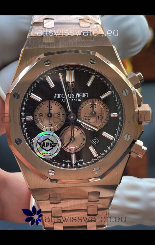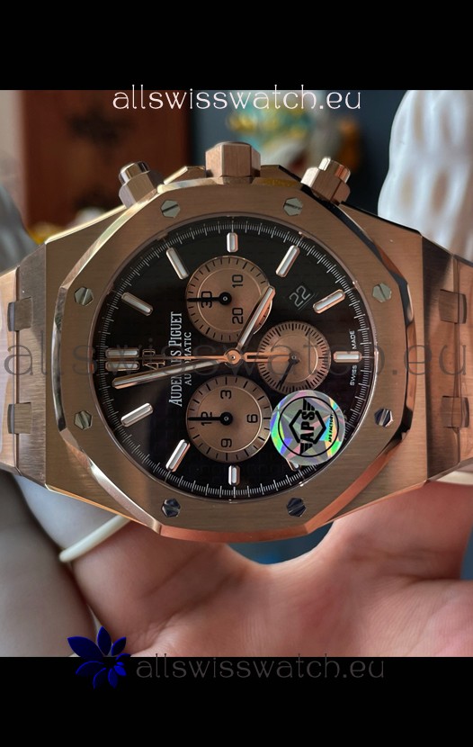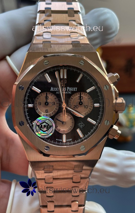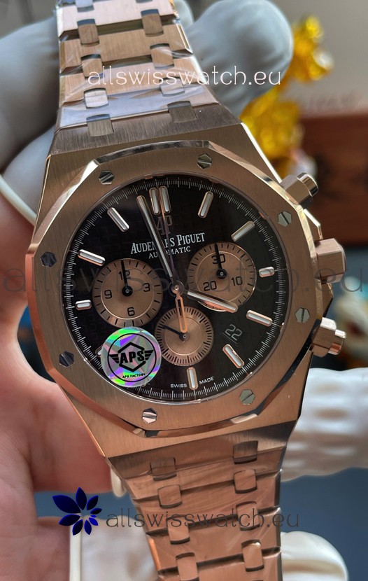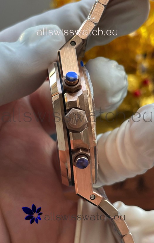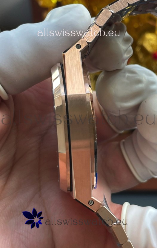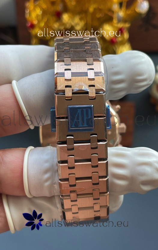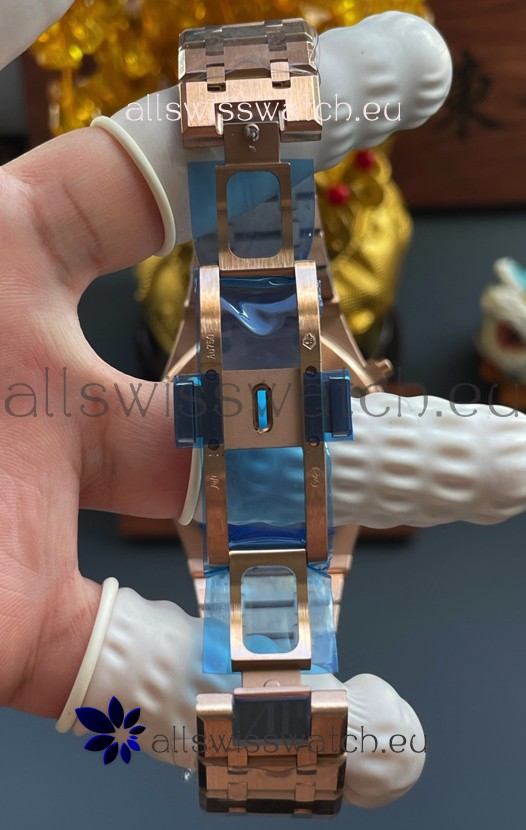 18K Rose Gold Plating on 904L Stainless Steel Strap completed with AP Markings and Engravings as per the originals and AP Folding Clasp