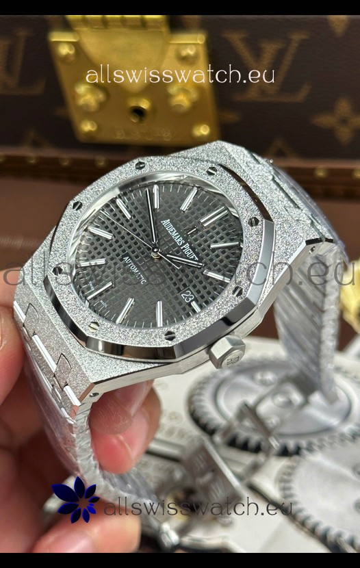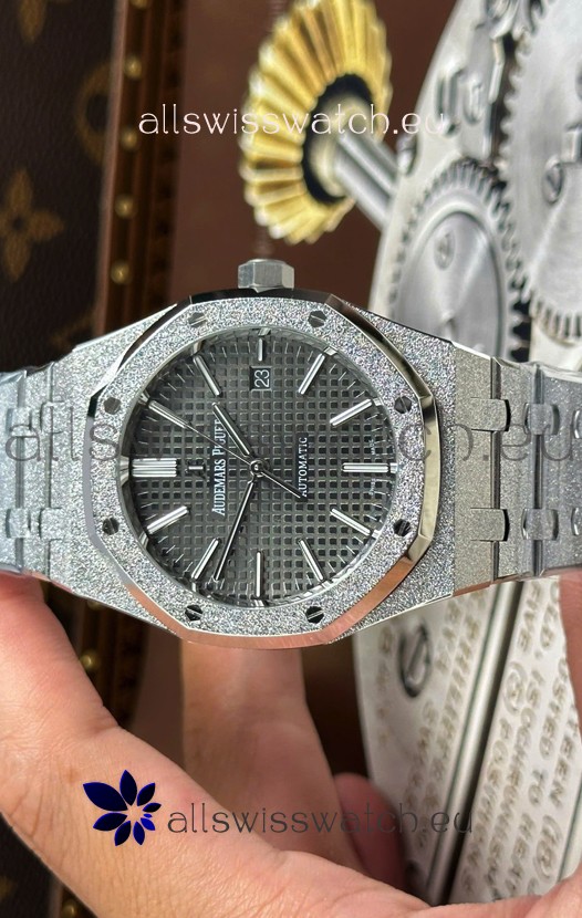 Audemars Piguet White Gold Plating Royal Oak Frosted 37MM Self-Winding Grey Dial 1:1 Mirror Replica Watch