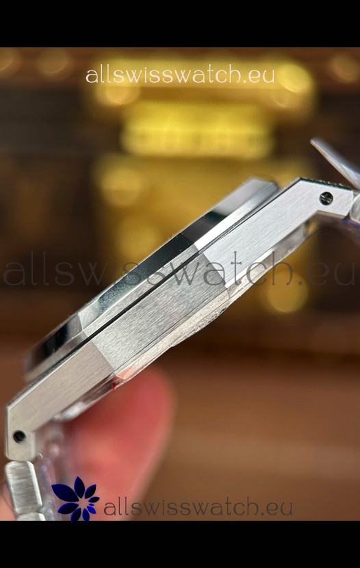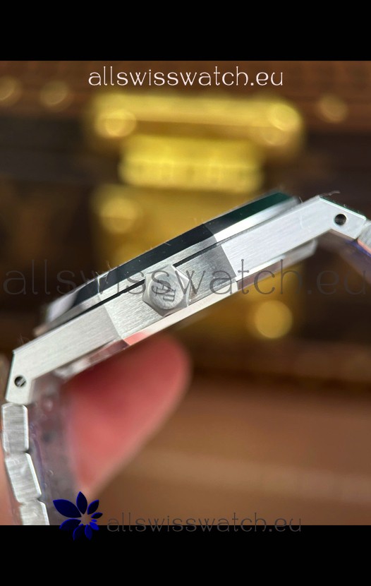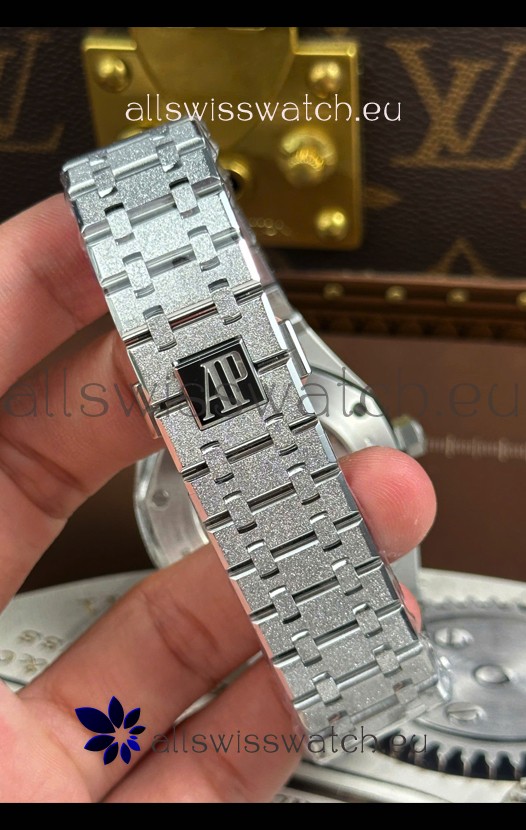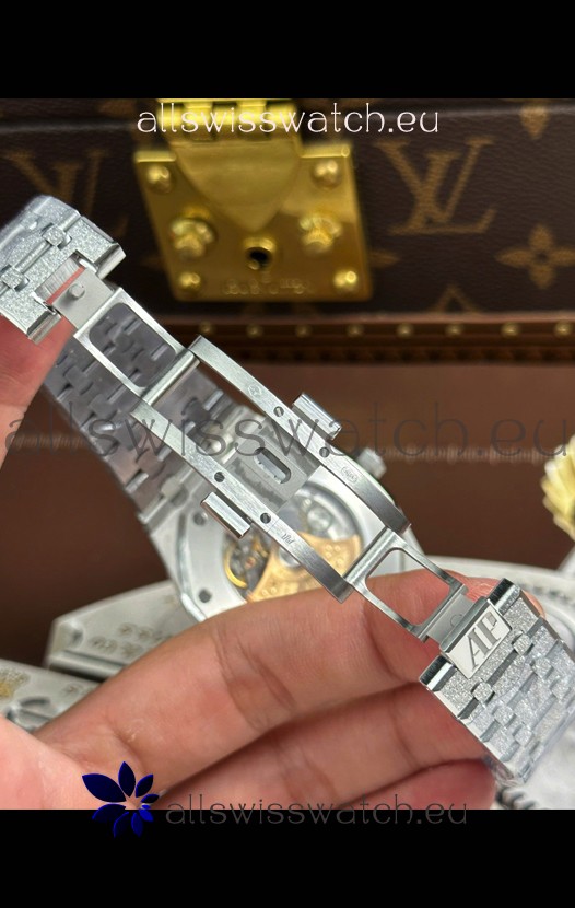 White Gold Plating on 904L Brushed Frosted Steel Casing with Audemars Piguet Markings and Engravings