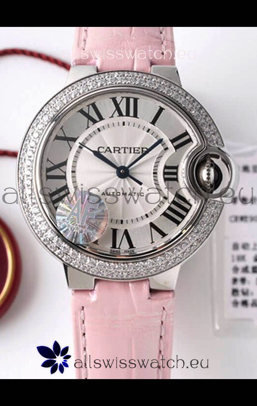 Ballon De Cartier Swiss Automatic 1:1 Mirror Quality 33MM in Stainless Steel Casing - Diamonds Bezel