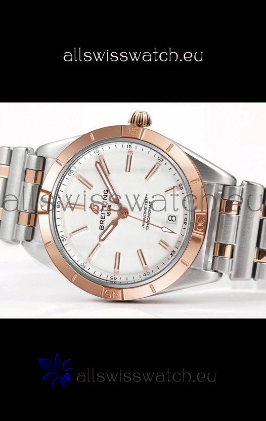 Breitling Chronomat 36MM 2 Tone Rose Gold Casing 1:1 Mirror Replica Watch White Dial