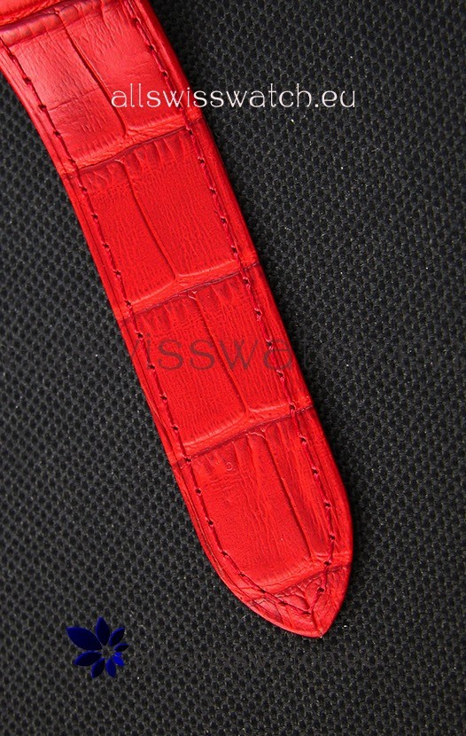 Genuine Red Leather Strap with Double Folding Clasp stamped with Cartier Markings and Engravings exactly like the Authentic