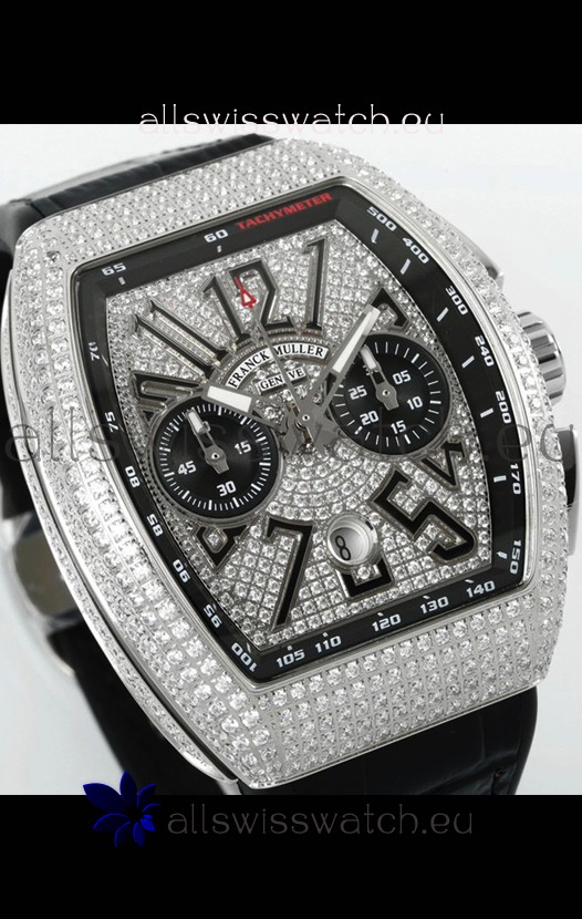 Franck Muller Vanguard V45 Chronograph 904L Steel Diamonds Embedded Dial Swiss Replica
