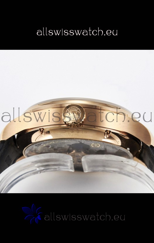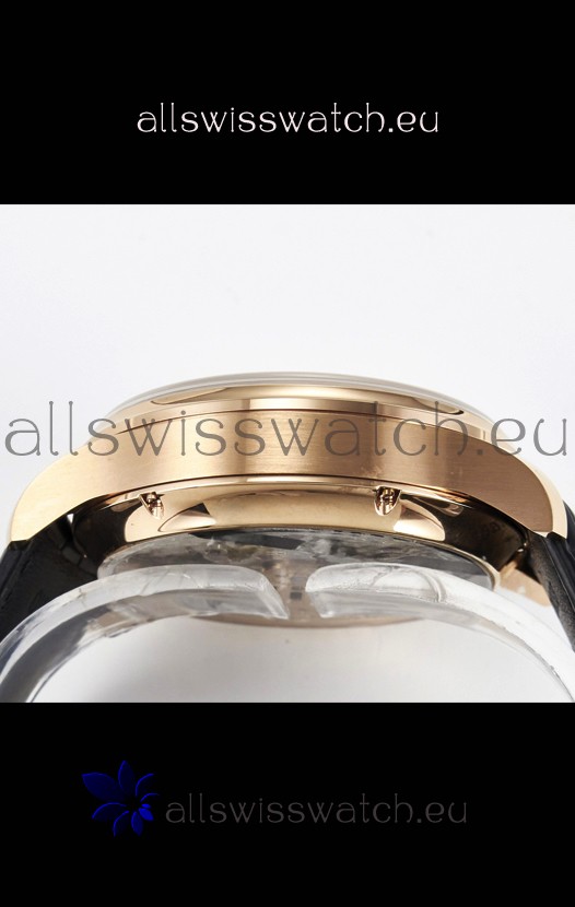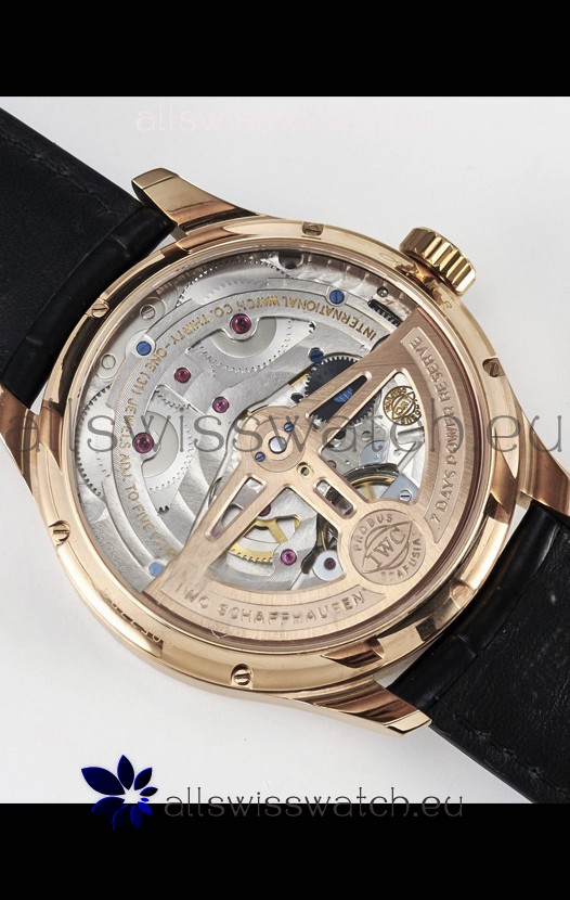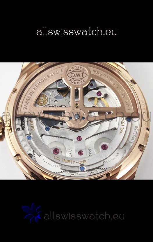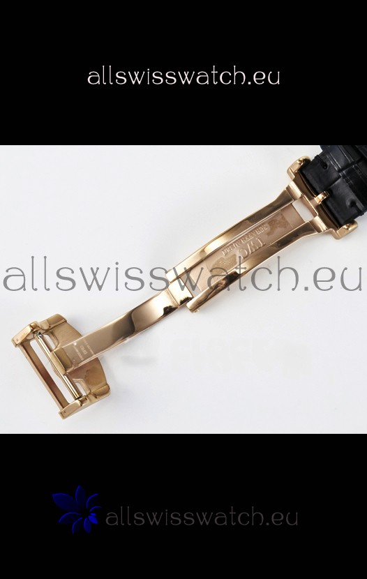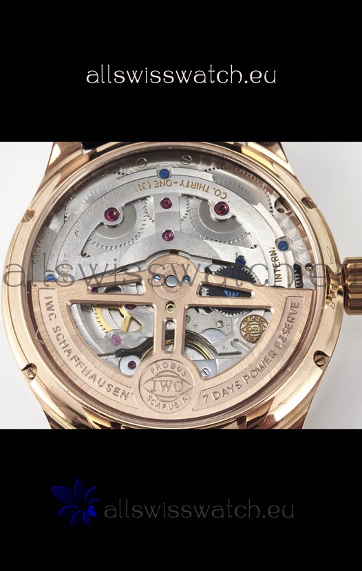 18K Rose Gold Plating on 904L Polished Solid Stainless Steel Case with IWC Markings and Engravings