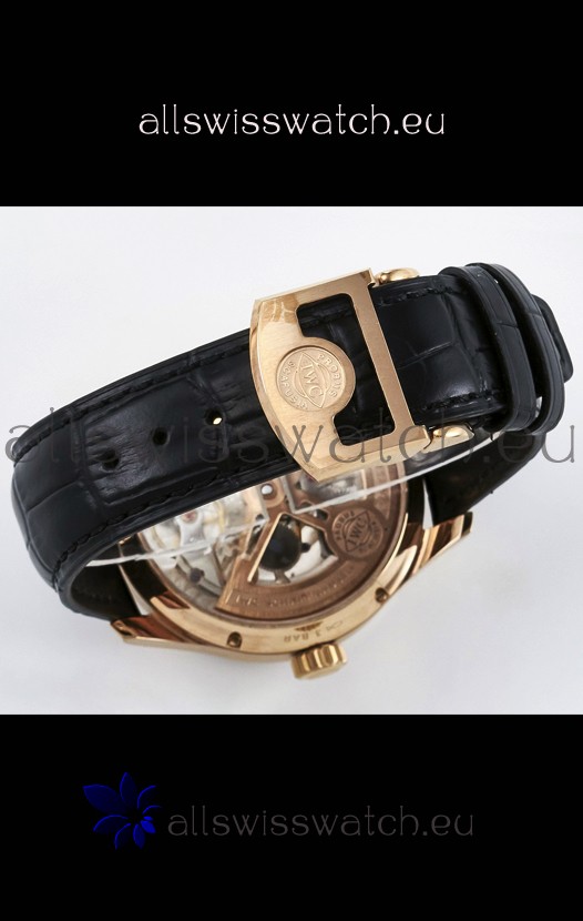 Genuine Leather Strap with IWC Markings and Engravings with Tang 18K Rose Gold Plated Steel Buckle
