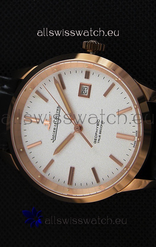 Jaeger LeCoultre Geophysic True Second Pink Gold Swiss Replica Watch White Dial