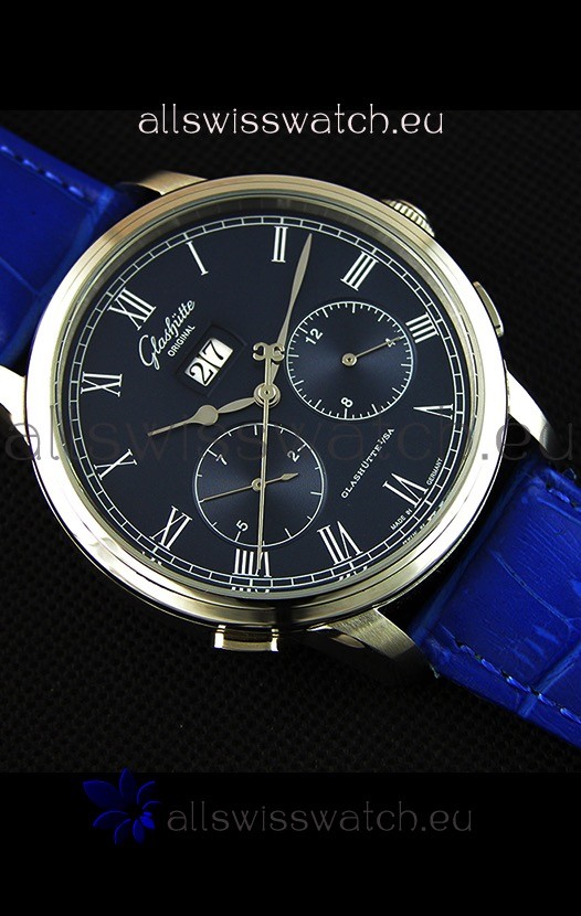 Glashuette Dual Sub Dial Japanese Replica Watch in Blue Dial