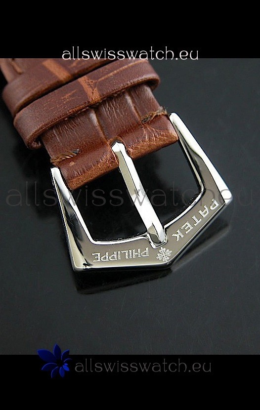 Strap: Genuine Brown Leather Strap with Patek Philippe Markings