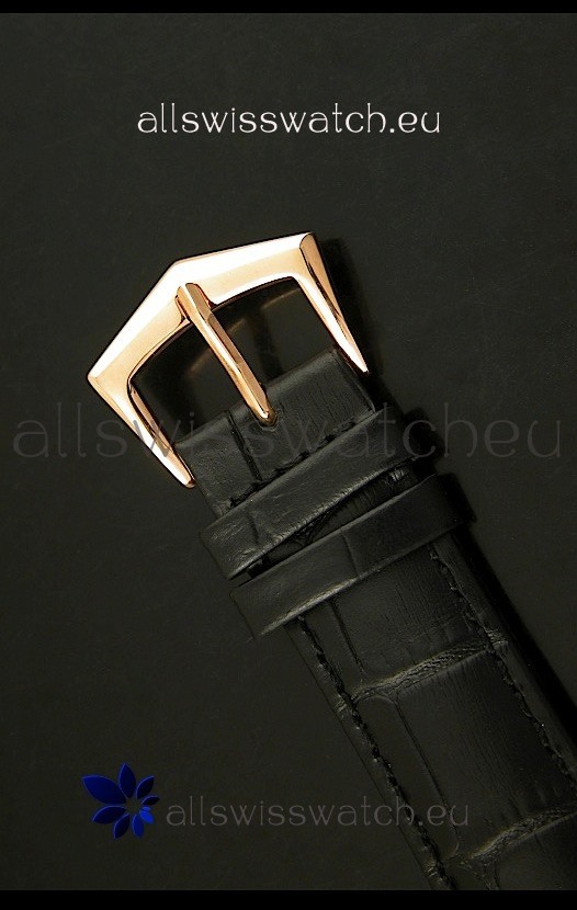 Genuine Leather Strap with Patek Philippe Markings and Engravings and Pink Gold Plated Clasps