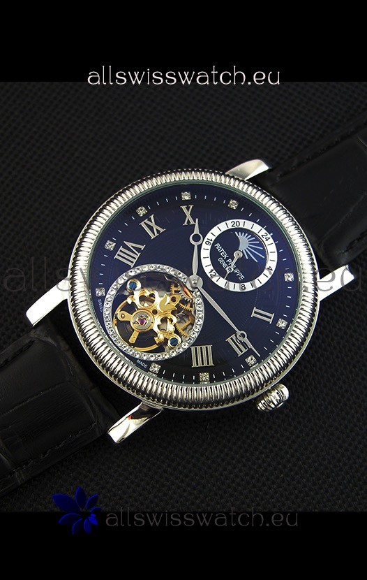 Patek Philippe Japanese MoonPhase Tourbillon Replica Watch Black Dial