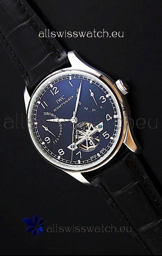 IWC Portuguese FA Jones Japanese Replica Watch in Black Dial with Tourbillon