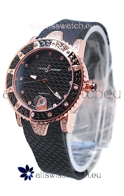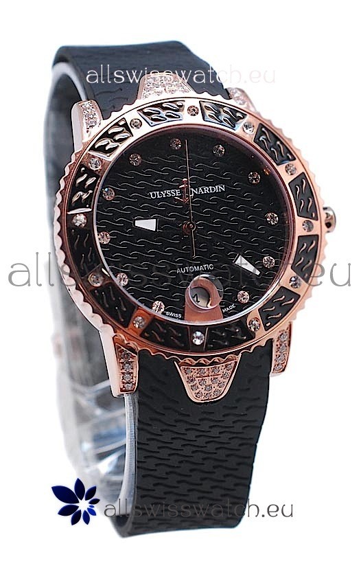 Ulysse Nardin Diver Pink Gold Watch in Black Dial