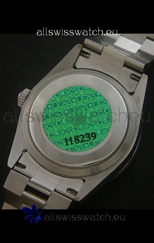 Other Feartures: Square Cut Blac Ruby Bezel, Green Hologram Sticker behind the Watch and Scratch Proof Sapphire Crystal with Double Layer Anti Reflective Coating