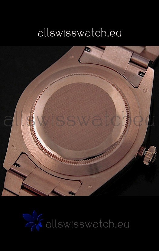 Other Feartures: Rose Gold Thick Plated on Steel Fluted Bezel, Green Hologram Sticker behind the Watch and Scratch Proof Sapphire Crystal with Double Layer Anti Reflective Coating