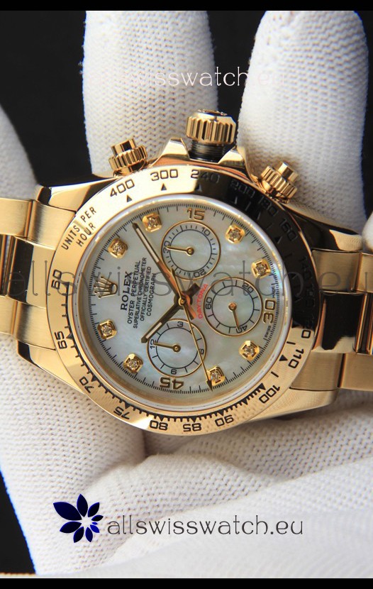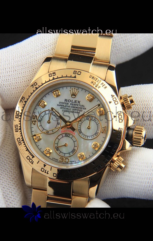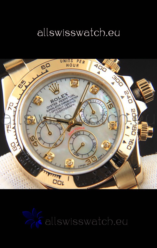You're reviewing: Rolex Daytona Japanese Movement Gold Casing Replica Watch in Mother of Pearl Dial