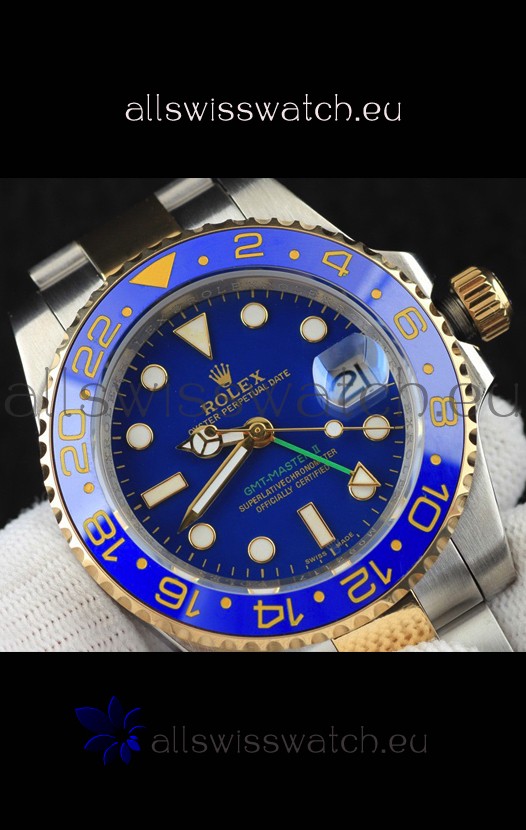 You're reviewing: Rolex GMT Masters II 2 Tone Rose Gold Plating Japanese Replica Watch Blue Dial