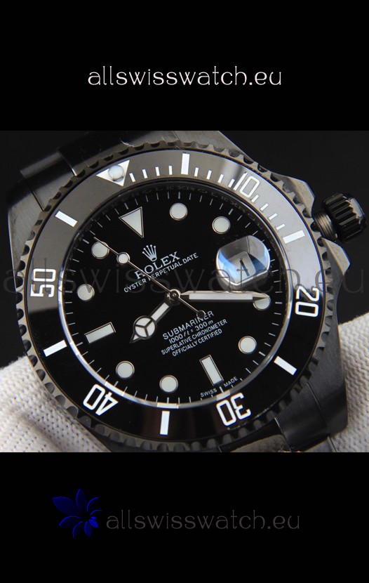 Rolex Submariner Japanese Replica Watch in PVD Coating Black Dial