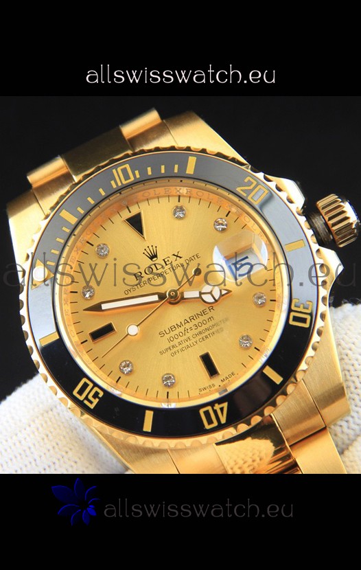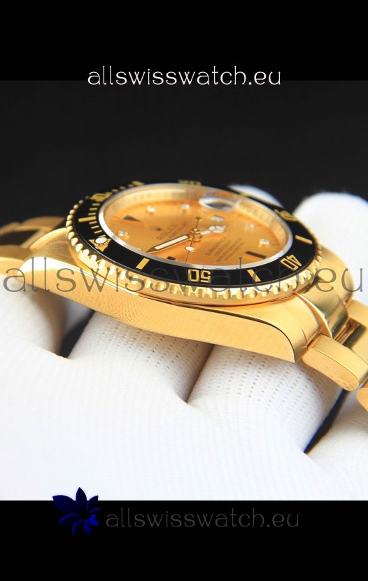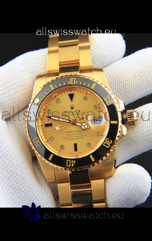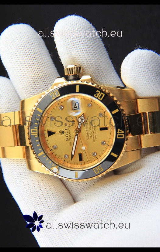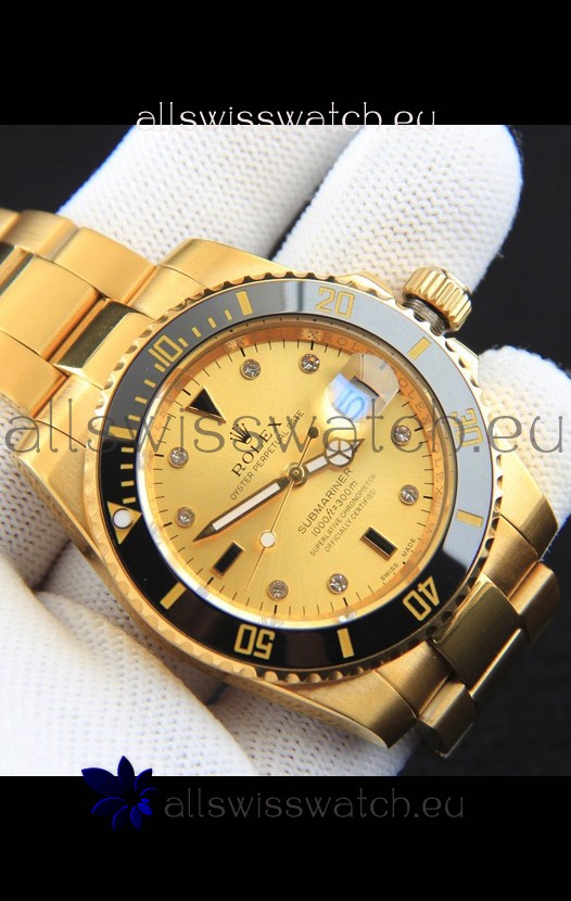 Rolex Submariner Japanese Replica Watch in Yellow Gold Casing Black Bezel