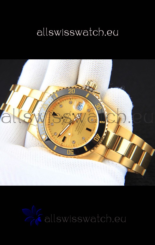 18K Yellow Gold Plating on 904L Stainless Steel Casing, Ceramic Bezel with Solid Rear back Case