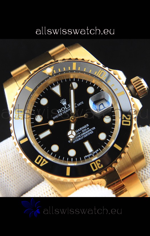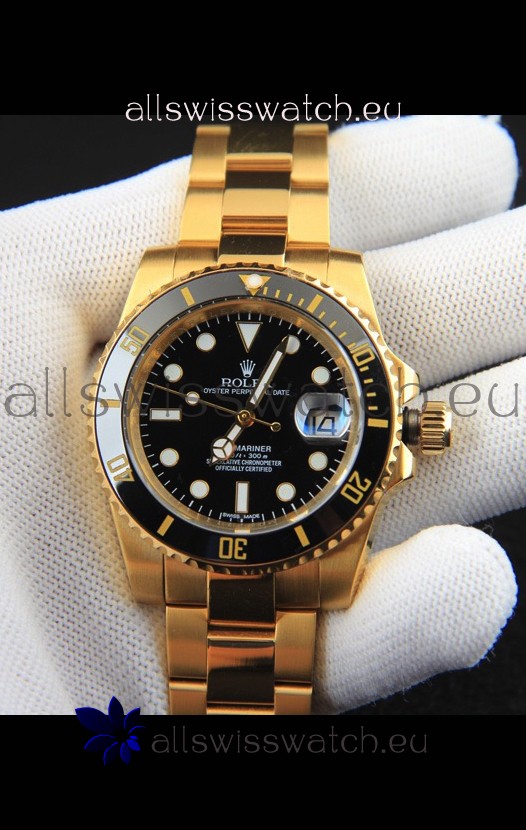 Rolex Submariner Japanese Replica Watch in Yellow Gold Casing Black Dial