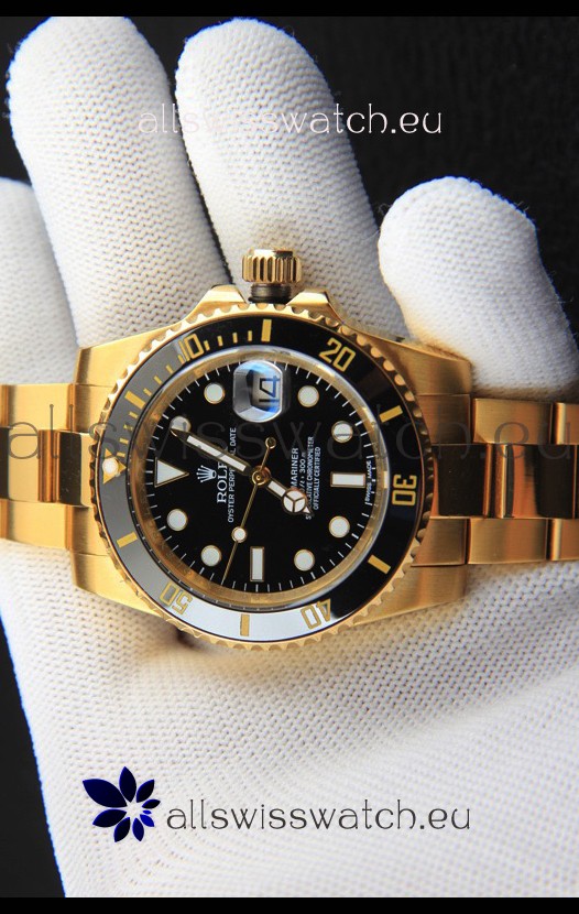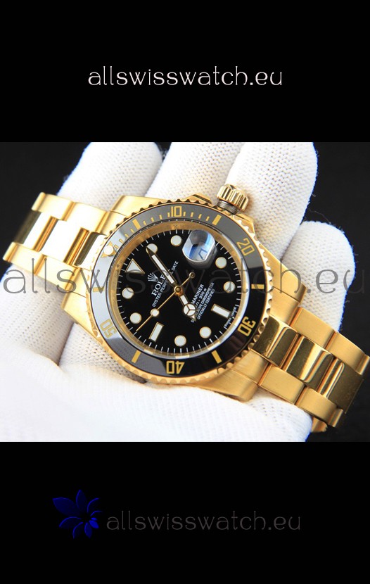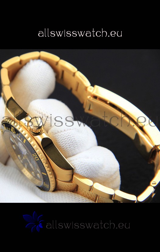 18K Yellow Gold Plating on 904L Stainless Steel Casing, Ceramic Bezel with Solid Rear back Case
