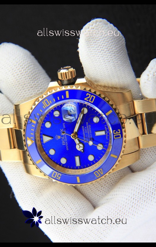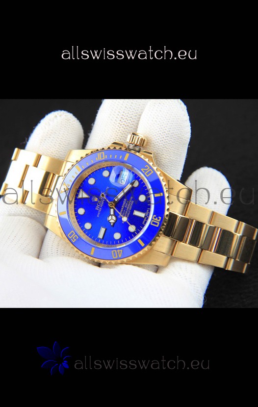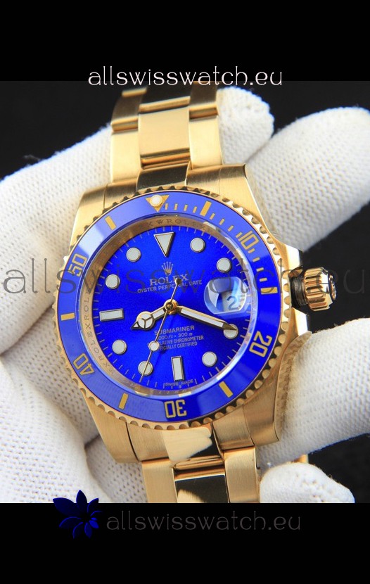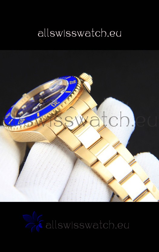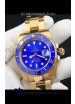 Rolex Submariner Japanese Replica Watch in Yellow Gold Casing Blue Dial