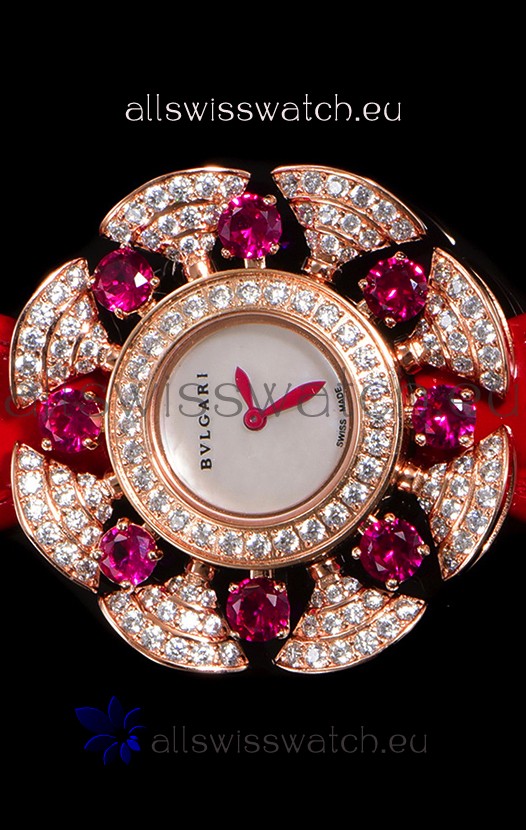 Bvlgari Divas's Dream Edition Watch in Rose Gold Casing - Diamonds Paved Dial Swiss Replica