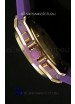 Case: Double Plated 18K Pink Gold Plated on Stainless Steel Case with Baguette Shaped Diamonds Bezel
