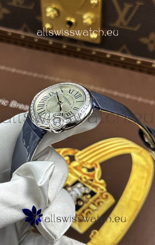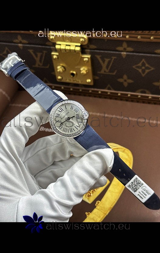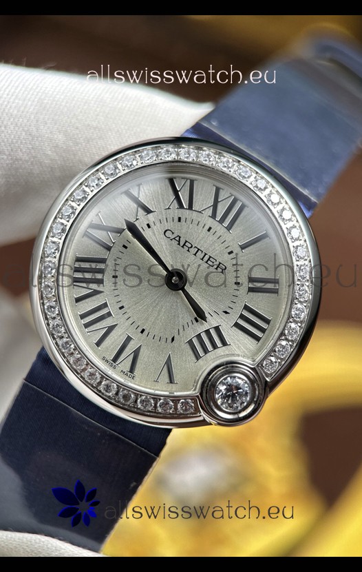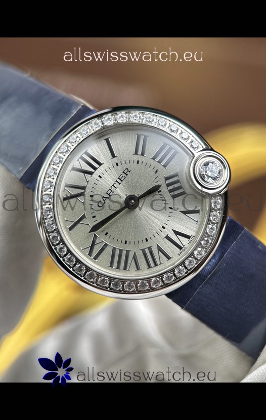 Ballon Blanc De Cartier Swiss Quartz Replica Watch in Steel Casing Fabric Strap