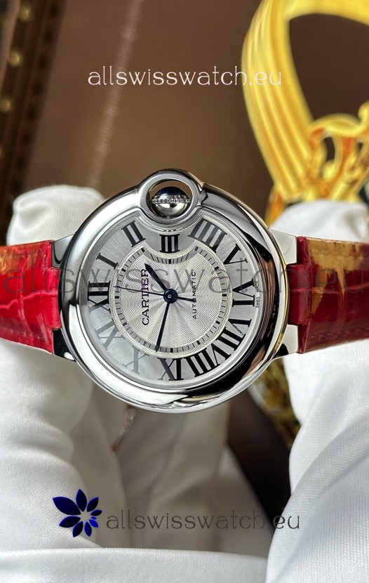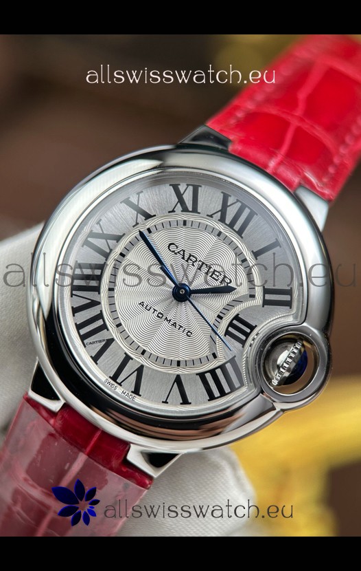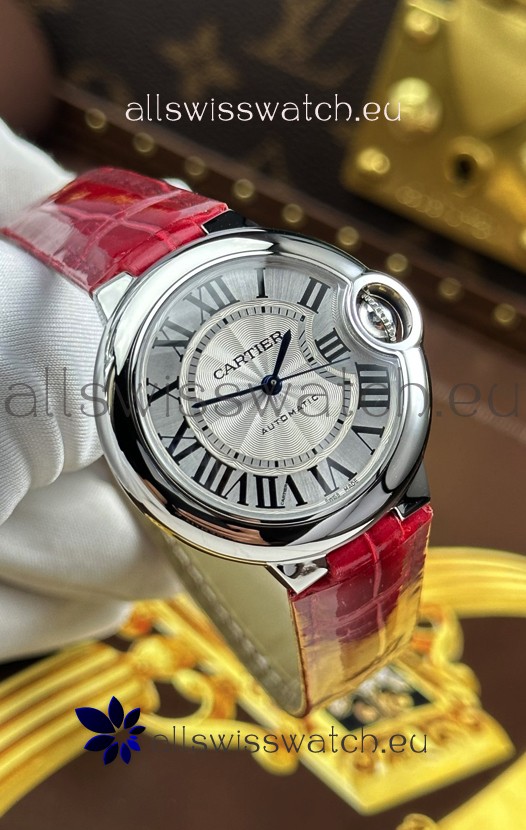 Ballon De Cartier Swiss Automatic 1:1 Mirror Quality 33MM in Burgundy Strap