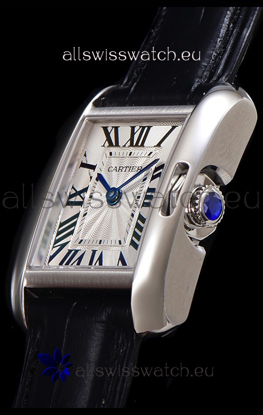 Cartier Tank Anglaise Stainless Steel Watch in Black Leather Strap Swiss Quartz Watch 30MM