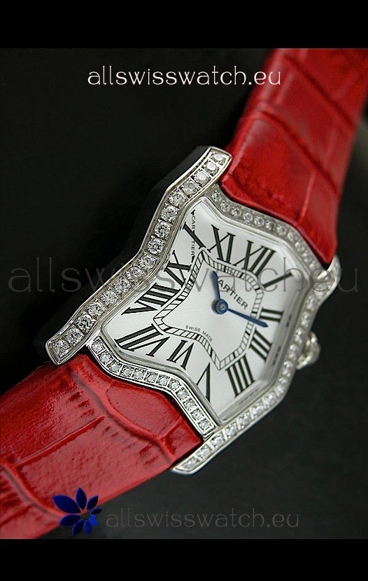 Cartier Tank Folle Ladies Replica Watch in Red Strap