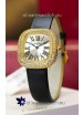 Coussin De Cartier Yellow Gold Swiss Replica Watch Black Strap