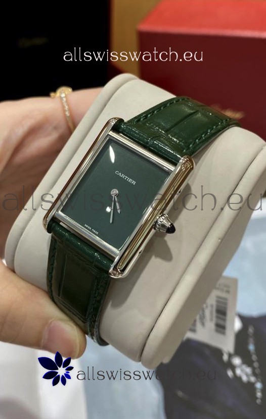 Must De Cartier Tank Edition Watch in 904L Stainless Steel Casing Green Dial
