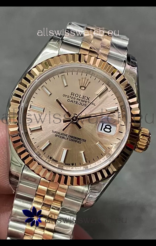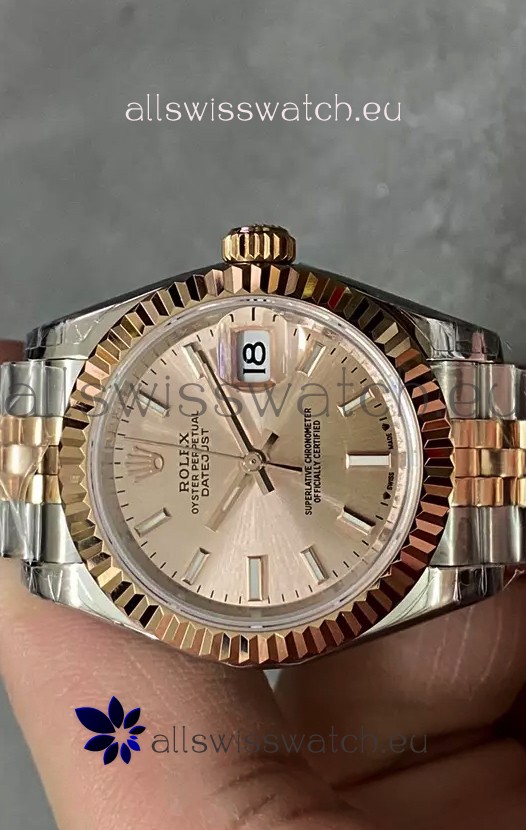 Rolex Datejust Super Clone Green Dial 2 Tone Rose Gold - Gold Dial Watch 28MM