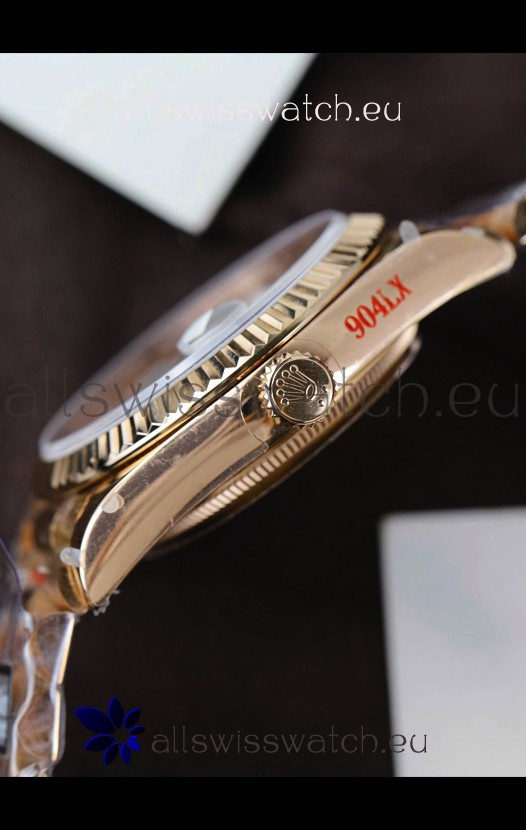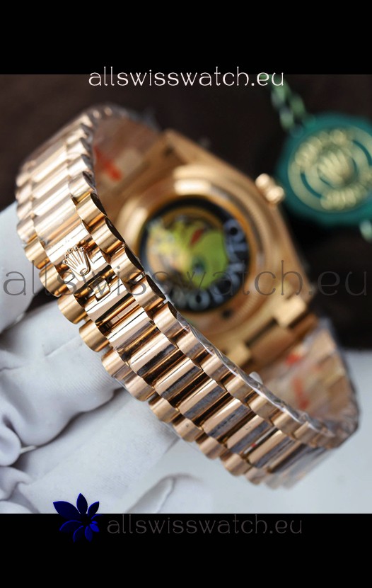 18K Rose Gold Plating on 904L Stainless Steel New Design President Strap with Folding Clasps complete with Rolex Markings and Engravings