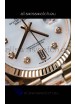 18K Rose Gold Plating on 904L Steel Case. Swiss Cut Diamonds Bezel