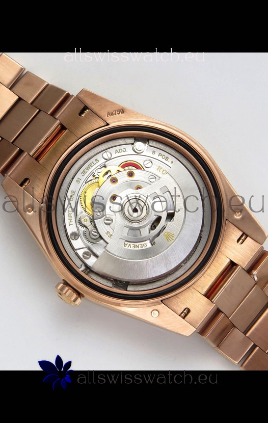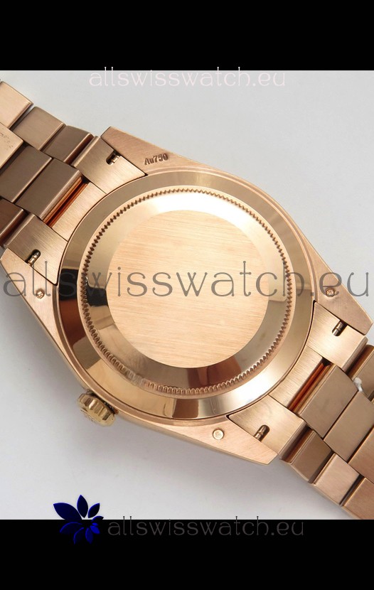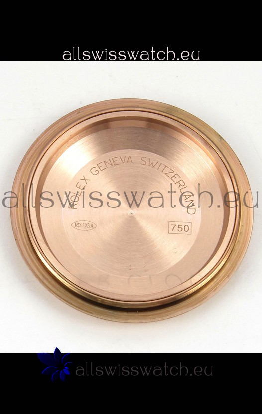 18K Rose Gold Plating on 904L Steel Case complete with all Rolex Markings and Engravings as per the Originals