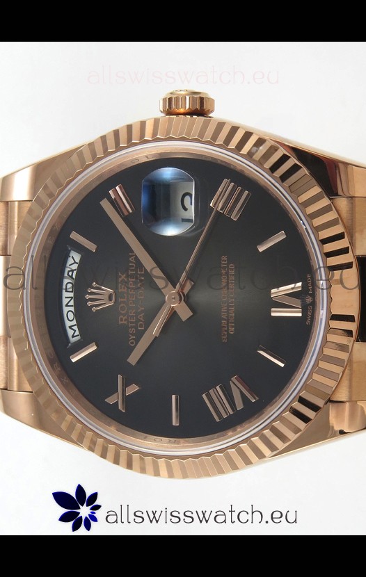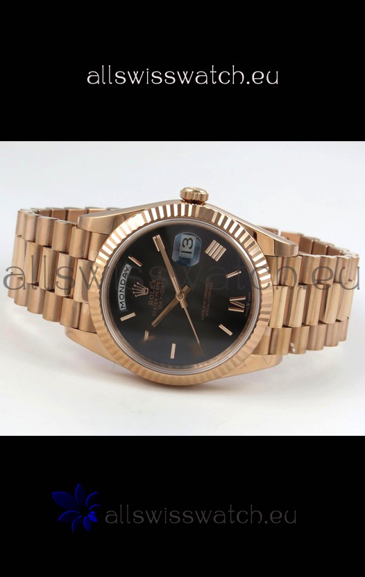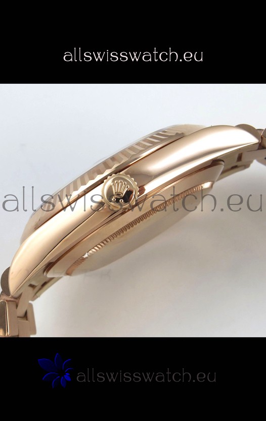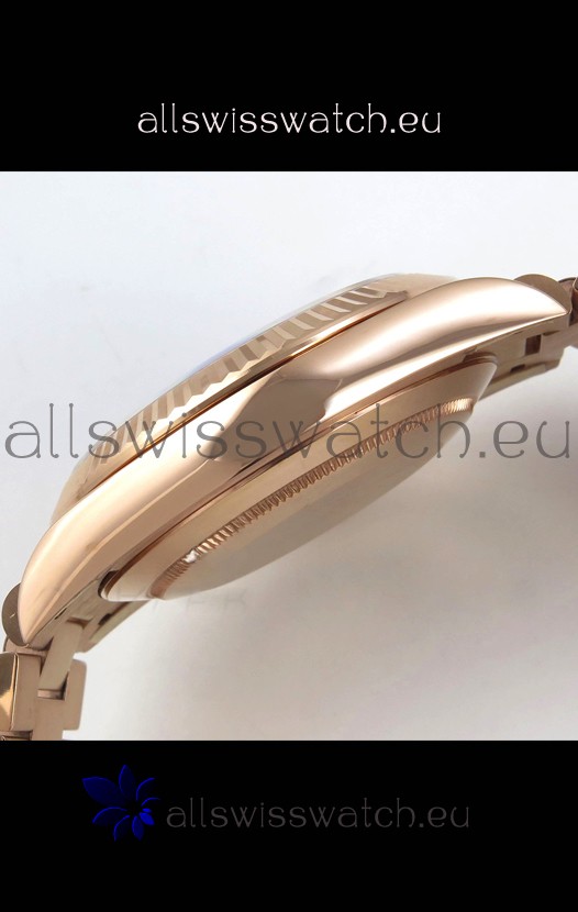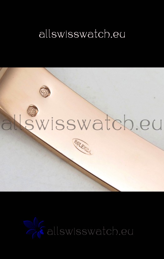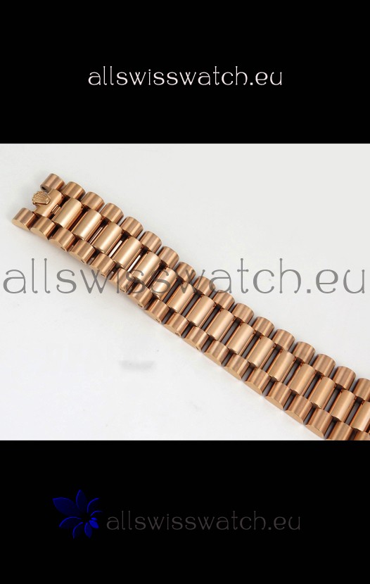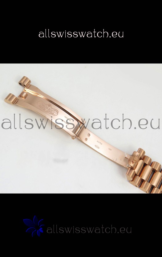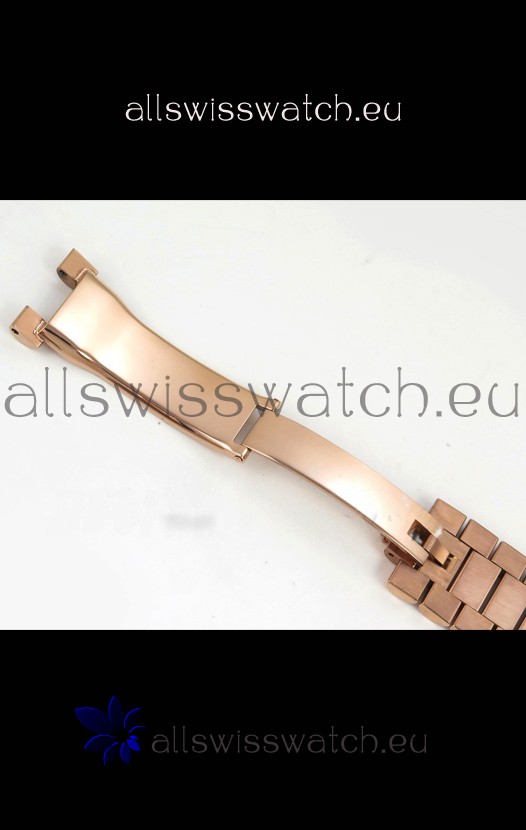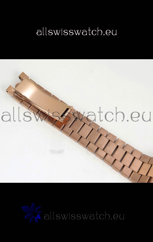 18K Rose Gold Plating on 904L Stainless Steel New Design President Strap with Folding Clasps complete with Rolex Markings and Engravings