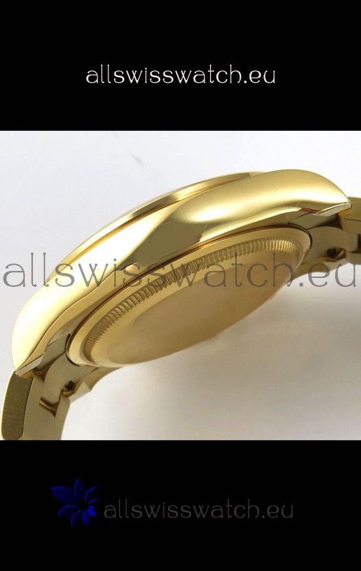Yellow Gold Plating on 904 Solid Stainless Case with Rolex Markings and Engravings like the Authentic.