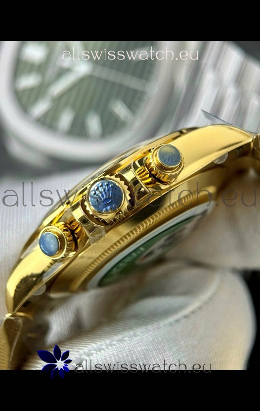 18K Yellow Gold Plating on 904 Solid Stainless Case with Rolex Markings and Engravings like the Authentic.