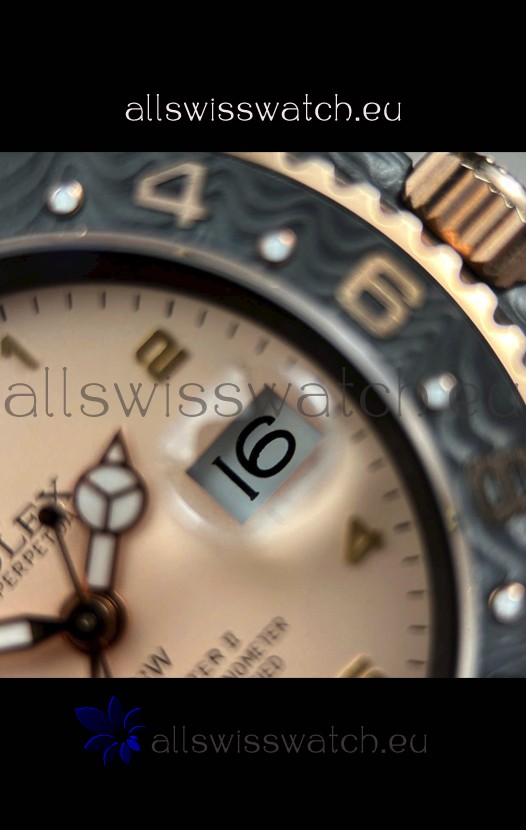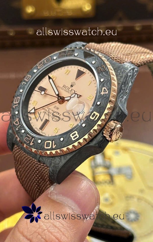Rolex GMT Masters DiW Black Carbon Casing Swiss Replica Watch Beige Gray Dial