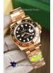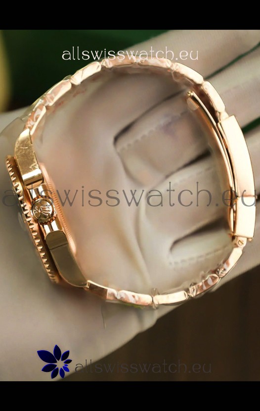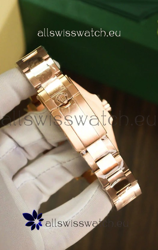 18K Rose Gold Plating on 916L Stainless Steel Strap linked with screws, the best bracelet manufacutred up to date for the GMT Series with Flip Lock Style Clasps complete with Rolex Markings and Engravings. 2MML Lug Spring Bars with rounded heads exactly like the Original GMT Watch Straps.