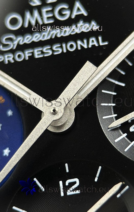 Black Dial with 3 Functional Sub Dials. Sub dial at 6 O'clock moves along with the Hour Hand which is slightly different when compared with the originals