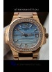 18K Rose Gold Plating on 904L Stainless Steel Strap with Steel Folding Clasp complete with Patek Philippe Markings.